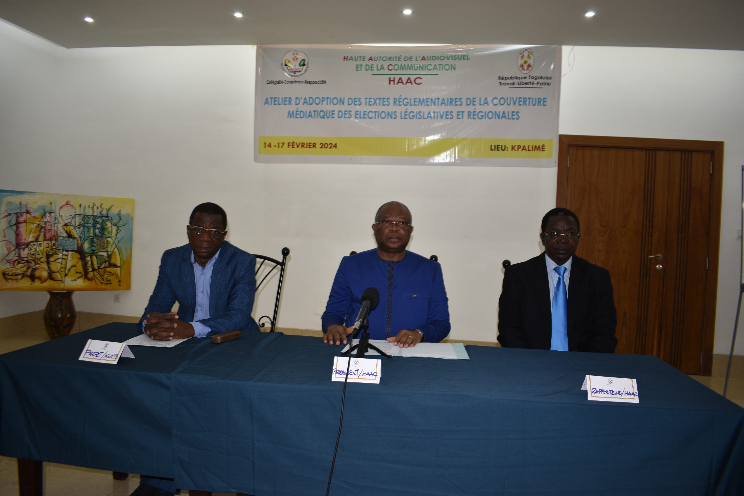 Les membres de la Haute Autorité de l’Audiovisuel et de la Communication (HAAC), entourés du personnel administratif, ont procédé les 15 et 16 février 2024 à Kpalimé, à l’examen et à l’adoption des principaux textes réglementaires de la couverture médiatique des élections législatives et régionales du 13 avril 2024 au Togo.